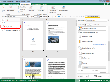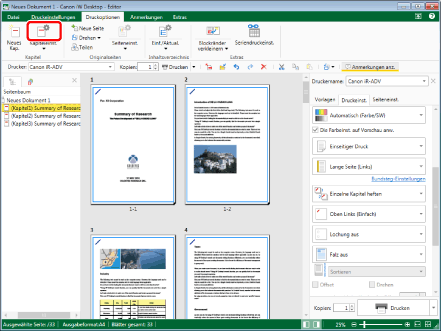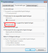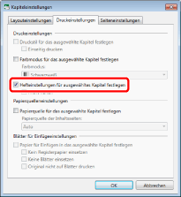 Wenn für die Hefteinstellungen [Einzelne Kapitel heften] ausgewählt ist, können die Hefteinstellungen auf Kapitelbasis aufgehoben werden.