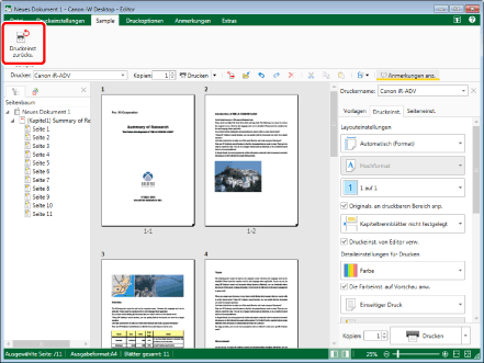 Wählen Sie im Menü [Datei] > [Optionen] > [Systemeinstellungen] > [Editor] > [Optionen] > [Beim Zurücksetzen von Druckeinstellungen Bestätigungsmeldung anzeigen].