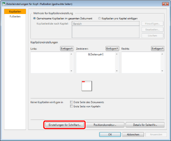 Die Schriftarteinstellungen für [Kopf-/Fußzeile in Druckseiten einfügen] und [Kopf-/Fußzeile in Originalseiten einfügen] sind identisch.