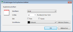 Ermöglicht Ihnen, die Schriftarteinstellungen für die Kopfzeile anzugeben.