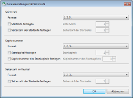 Ermöglicht Ihnen die Angabe detaillierter Einstellungen der Seitenzahl im Kapitel.