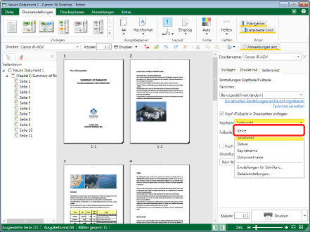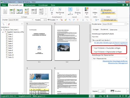 Die Vorgehensweise für die Kopf-/Fußzeile bei gedruckten Seiten und bei Originalseiten ist identisch.