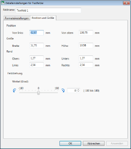 Konfigurieren Sie den Drehwinkel des Textfelds.