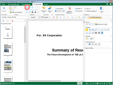 Dieser Vorgang kann auch über die Schaltflächen der Symbolleiste durchgeführt werden. Wie Sie Schaltflächen anzeigen, die nicht in der Symbolleiste von Desktop Editor enthalten sind, erfahren Sie hier: