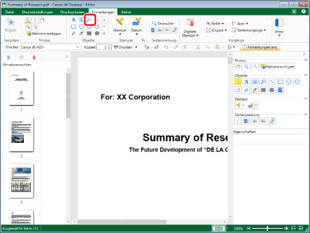 Dieser Vorgang kann auch über die Schaltflächen der Symbolleiste durchgeführt werden. Wie Sie Schaltflächen anzeigen, die nicht in der Symbolleiste von Desktop Editor enthalten sind, erfahren Sie hier:
