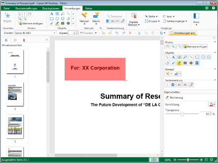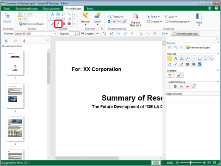 Sie können einen quadratischen Textmarker einfügen, indem Sie die Maus ziehen und gleichzeitig auf der Tastatur die [Umschalt]-Taste gedrückt halten.