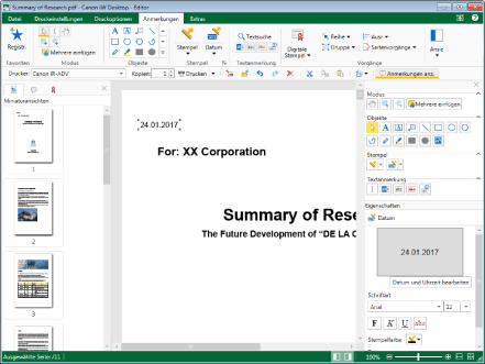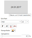 Um die Größe des eingefügten Stempels anzupassen, ändern Sie die Schriftgröße in der Detailansicht.