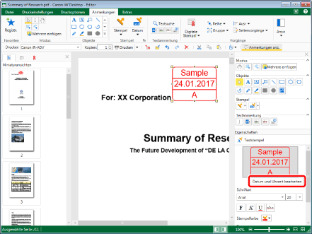 Geben Sie das in den Stempel einzufügende Datum ein. Wenn Sie auf