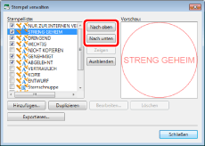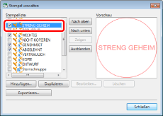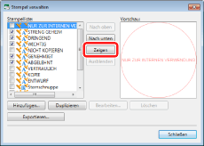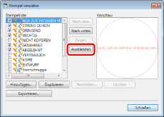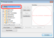 Nur die Stempel, deren Kontrollkästchen neben dem Stempelnamen in [Stempelliste] aktiviert sind, werden in der Pulldown-Liste angezeigt.