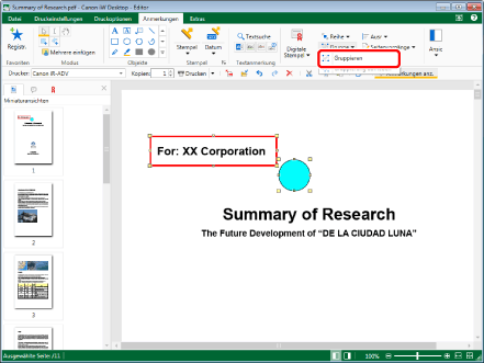 Sie können auch Gruppen wiederum gruppieren oder eine Gruppe aus einer einzigen Anmerkung erstellen. Wenn Sie zwei Gruppen erneut gruppieren, wird die vorhandene Gruppierung aufgehoben und der Inhalt beider Gruppen zu einer gemeinsamen Gruppe zusammengefasst.