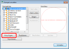 Bereits vorhandene Stempelnamen können nicht verwendet werden.