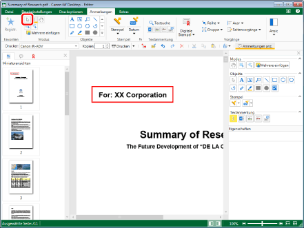 Sie können die Auswahl einer Anmerkung auch deaktivieren, indem Sie auf diese klicken und gleichzeitig auf der Tastatur die Taste [Strg] gedrückt halten.