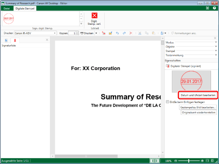 Geben Sie das in den digitalen Stempel einzufügende Datum ein. Wenn Sie auf