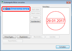 Sie können voreingestellte Stempel, die während der Installation automatisch registriert wurden, nicht bearbeiten. Stempel, die auf der Grundlage dieser Stempel dupliziert wurden, können Sie jedoch bearbeiten.