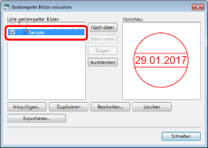Das [Gestempelte Bilder verwalten]-Dialogfeld wird angezeigt.