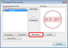 Bearbeiten Sie die Einstellungen registrierter gestempelter Bilder im Dialogfeld [Gestempeltes Bild bearbeiten].