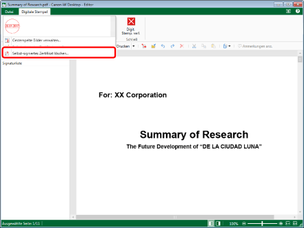 Nur selbst signierte Zertifikate, die in Desktop Editor erstellt wurden, werden im Dialogfeld [Selbst-signiertes Zertifikat löschen] angezeigt.