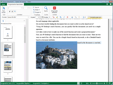 Wenn Sie ein Objekt im Arbeitsfenster auswählen, wird die Gesamtzahl der ausgewählten Objekte und die Anzahl der Textobjekte in der Statusleiste angezeigt.