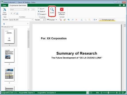 Wenn die Suche längere Zeit andauert, wird ein Dialogfeld mit der Meldung angezeigt, dass eine Suche durchgeführt wird.