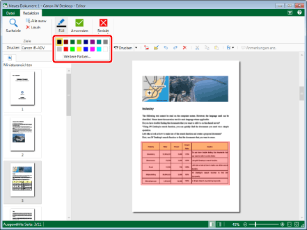 Redaktionsmarkierungen können im Modus "Originalseiten bearbeiten" als Objekte ausgewählt werden.