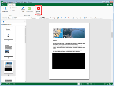 Text um den Redaktionsbereich kann gelöscht werden, wenn die Redaktionsmarkierungen übernommen wurden, abhängig von Form und Layout (Drehung usw.) des Texts.