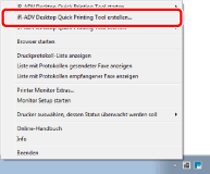 (Hauptsymbole) in der Taskleiste und wählen Sie [iR-ADV Desktop Quick Printing Tool erstellen].