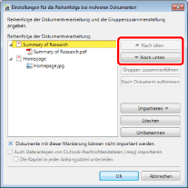 [Einstellungen für die Reihenfolge bei mehreren Dokumenten]: Zeigt das Dialogfeld [Einstellungen für die Reihenfolge bei mehreren Dokumenten] an.