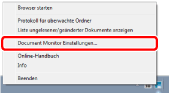 Die Standardeinstellungen von Windows 7/Windows 8.1/Windows 10 schränken die Anzeige von Symbolen in der Taskleiste ein. Weitere Informationen zum Anzeigen der Document Monitor-Symbole in der Taskleiste finden Sie hier:
