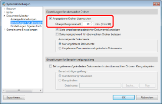 Wenn das Kontrollkästchen [Angegebene Ordner überwachen] deaktiviert ist, werden der überwachte Ordner und die darin befindlichen Dokumente nicht im Fenster [Liste ungelesener/geänderter Dokumente] angezeigt.