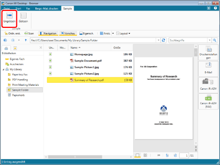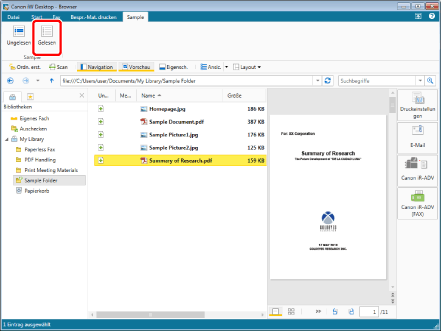 Wenn Sie das Kontrollkästchen [Ungelesene Dokumente nach dem Anzeigen automatisch als gelesen markieren] aktivieren, werden ungelesene Dokumente automatisch zu gelesenen Dokumenten, wenn Sie einen Vorgang mit ihnen ausführen (Vorschau, Öffnen, Drucken, Faxen, E-Mail-Erstellung usw.)