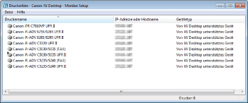 Wenn ein Drucker hinzugefügt oder der Anschluss, die IP-Adresse oder der Hostname eines Druckers geändert wurde, werden die angezeigten Informationen beim nächsten Start von Desktop Monitor Setup aktualisiert.