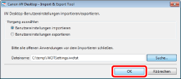 Je nach Systemumgebung müssen Sie den Computer nach dem Import der Einstellungen möglicherweise neu starten.
