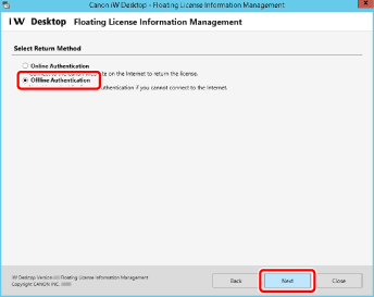 Wählen Sie [Offline Authentication] aus und klicken Sie dann auf [Next].