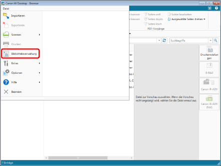 Wählen Sie im Menü [Datei] > [Bibliotheksverwaltung].
