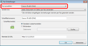 Wählen Sie den zu verwendenden Faxtreiber unter [Fax auswählen] aus.