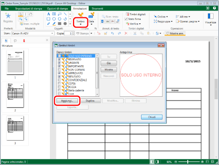 nella scheda [Annotazioni] e inserirlo nel documento. Dopo aver inserito il timbro, fare clic su