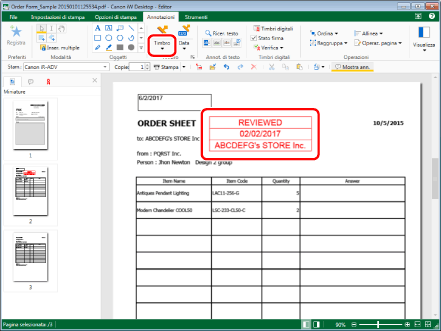 Utilizzare Desktop Editor per inserire il timbro del responsabile del modulo d'ordine.