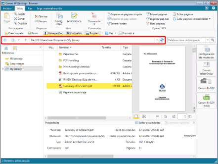 La barra de direcciones muestra la ruta de una biblioteca seleccionada, Mi bandeja o una carpeta. También puede hacer clic en