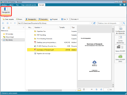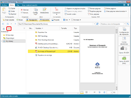 Esta operación también puede realizarse con los botones de herramienta de la barra de herramientas. Si no se muestran botones de herramienta en la barra de herramientas de Desktop Browser, consulte la siguiente información para visualizarlos.