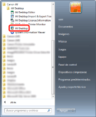 En Windows 10, seleccione el menú [Inicio] > [Todas las aplicaciones] > [Canon iW] > [iW Desktop]. Se inicia Desktop Browser.