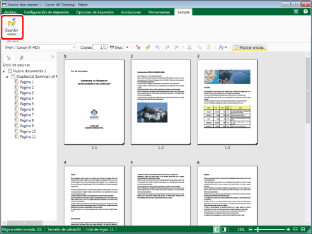 Para guardar un documento como documento PDF, seleccione [Archivo PDF (*.pdf)] en [Tipo de documento] o [Tipo]. Para obtener más información, consulte: