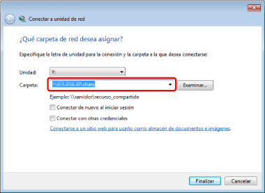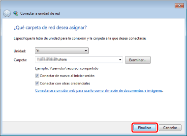 Para Windows 8.1/Windows 10, seleccione la casilla de verificación [Conectar de nuevo al iniciar sesión].