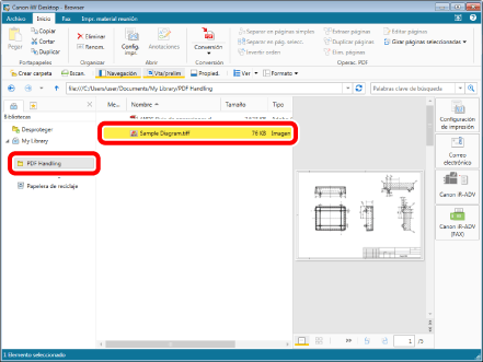 El archivo "Sample Diagram.tiff" de la carpeta PDF Handling se convertirá en un documento PDF. Con Desktop, puede convertir fácilmente documentos con diferentes extensiones en documentos PDF.