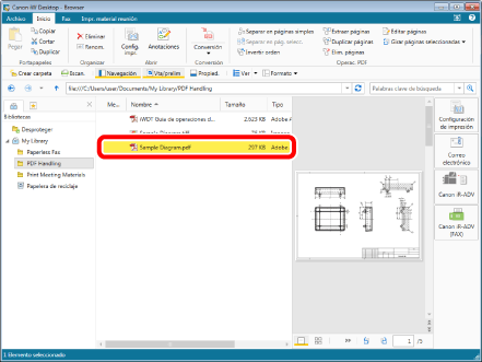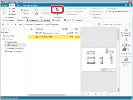 Seleccione el archivo "Sample Diagram.pdf" que ha creado en "Convertir en un documento PDF," y, a continuación, haga clic en
