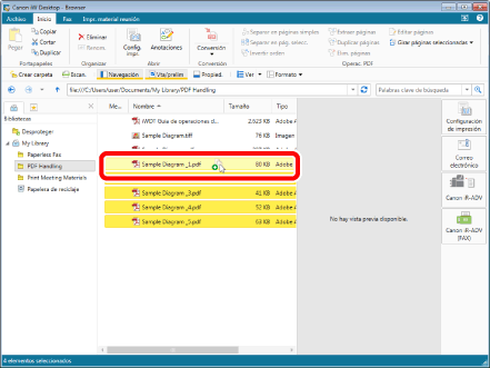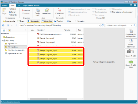 Seleccione los documentos de "Sample Diagram_2.pdf" a "Sample Diagram_5.pdf" que dividió en el apartado "Dividir un documento PDF".