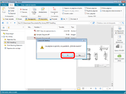 Haga clic en [Sí] en el cuadro de diálogo que se muestra. La página rotará y el documento se guardará.