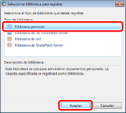Seleccione [Biblioteca personal] y haga clic en [Aceptar].
