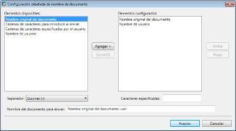 Muestra la plantillas de nombres de documentos renombrados en el orden de los [Elementos configurados].