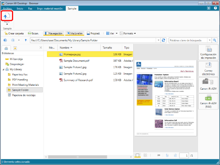 Para documentos PDF, se inicia la aplicación establecida en [Seleccionar programa para abrir el documento PDF] en [Configuración del sistema]. Para obtener más detalles, consulte: