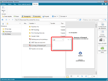 Seleccione el documento en la Ventana de visualización de la lista de archivos.